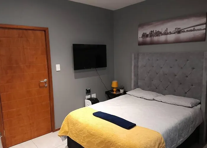Localizado em Joanesburgo, o apartamento Luxury Studio 5Min Walk To Gandhi Square + Wifi Apartamento é uma acomodação de 1 quartos com área de piquenique, solário e barbeiro. Esta propriedade fica a apenas de 200 metros do Minerals Council South Africa e a 7 km de Estádio FNB.